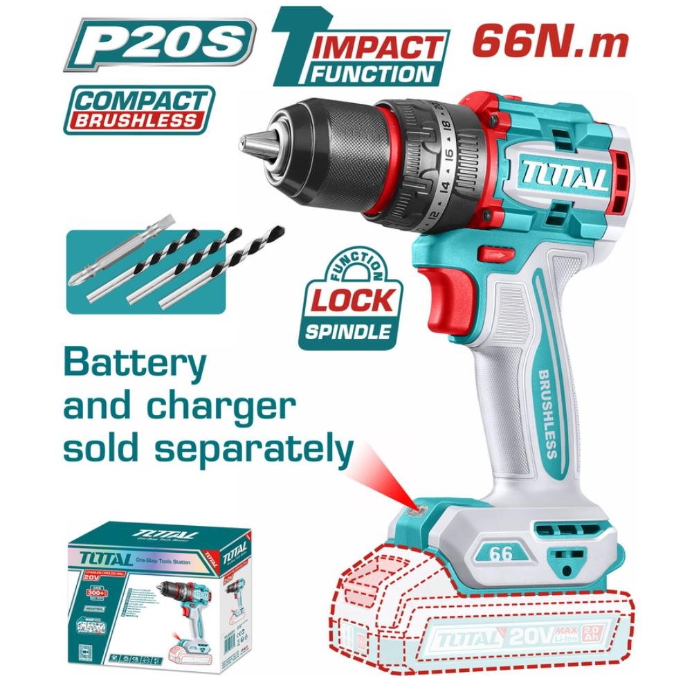 Total Επαγγ. Δραπανοκατσάβιδο Κρουστικό Μπατ. Li-Ion 20v / 66nm Bl Motor Χωρίς Μπατ & Φορτιστή (Tidli206681)